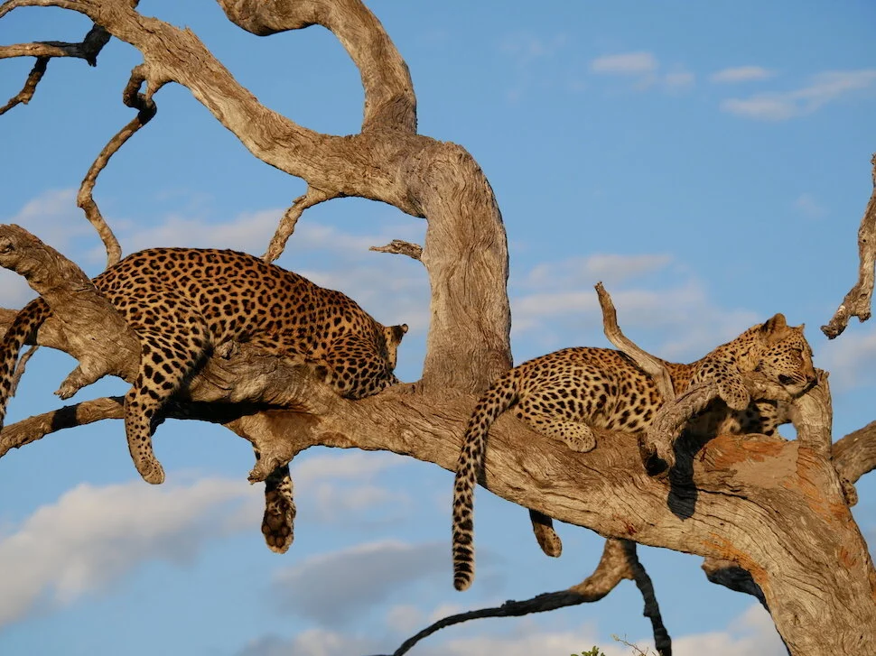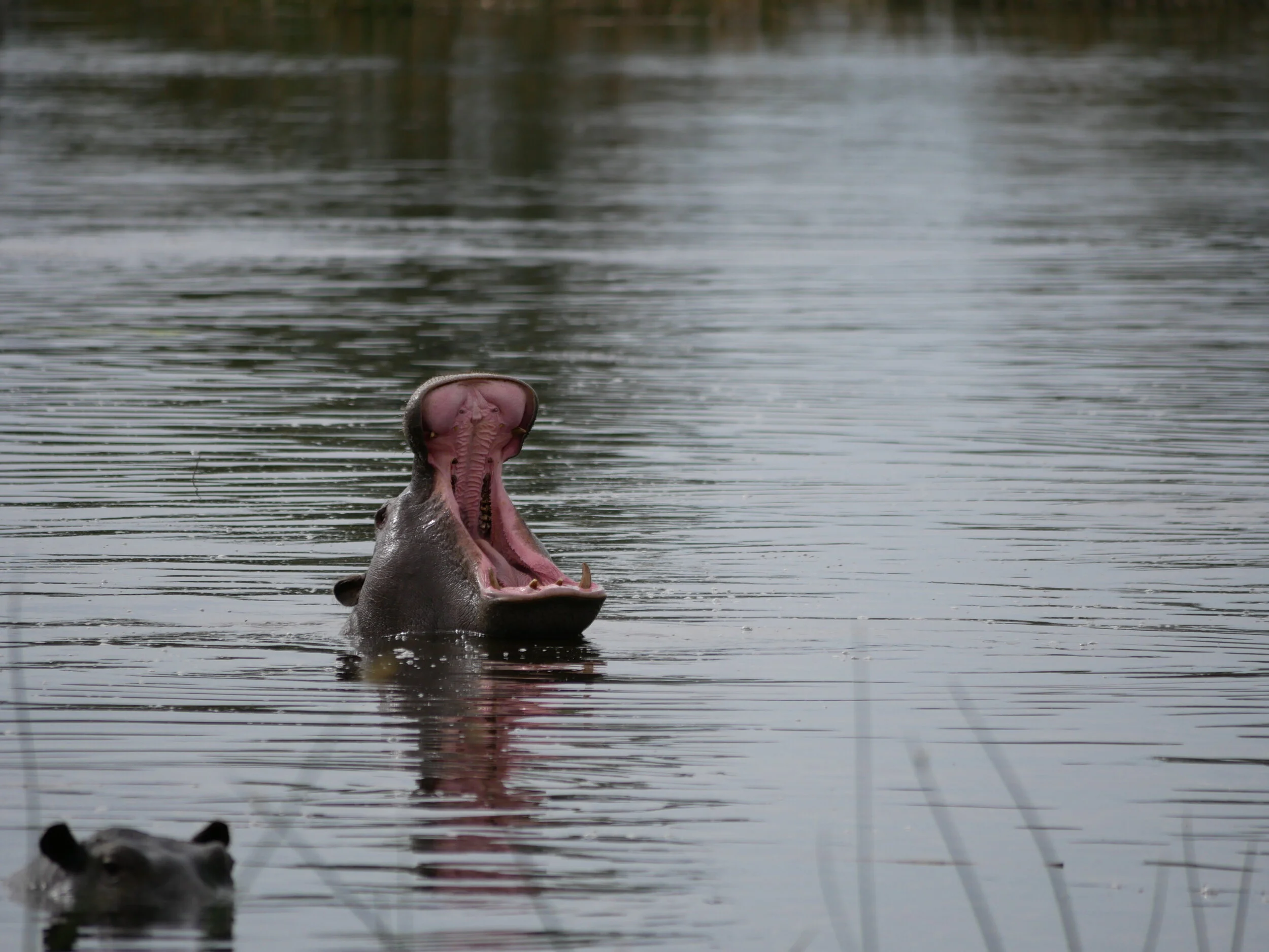 Mit Tränen in den Augen verließen wir Gomoti. Die herzliche und fröhliche Art der Menschen sowie die Vielfalt der Natur und Tiere haben uns sehr beeindruckt. Mit dem Buschflieger ging es weiter in das Linyanti Feuchtgebiet. Nach 45 Minuten Flug und einer rasanten Bootsfahrt erreichten wir das Camp Selinda Great Plains. Der Blick von der Terrasse direkt auf den Selinda Spillway war traumhaft. Die Landschaft veränderte sich in eine Steppe mit Gräsern, was die Suche - „das Spotting“ - erschwerte und die Strecken mit dem Jeep viel länger wurden. Auch hier erwartete uns ein tierreiches und eindrucksvolles Gebiet mit Elefantenherden, Büffeln und Hyänen, Giraffen und Zebras. Natürlich auch Löwen und Leoparden. Das eindrucksvollste Bild war eine Leoparden-Dame mit ihrem Jungtier auf einem Baum. Die Beute war auf dem Baum gesichert und die Tiere lagen total entspannt auf den Ästen des Baumes. Dabei ging die Sonne unter… ein unvergesslicher Augenblick in Afrika. Ach... natürlich waren wir unvergesslich beeindruckt über die Attacke eines Hippos im Wasser auf unser Boot. Fast wie ein Delfin sprang das Hippo auf unser Boot zu und verfehlte es nur um einen Meter. Unfassbar wie schnell sich diese Kolosse im Wasser bewegen können. Der Guide musste dann zugeben, dass es sehr knapp war und das Hippo (unter den Guides „the Beast“ genannt) nicht spielen wollte. Der Hinweis auf die Schwimmwesten war wohl eher symbolisch gemeint, denn wenn das Hippo das Boot zum Kentern gebracht hätte, wäre es wahrscheinlich nur die Wahl gewesen, vom Hippo oder von Krokodilen gefressen zu werden. Kein Wunder, dass Flusspferde die gefährlichsten Tiere Afrikas sind.
