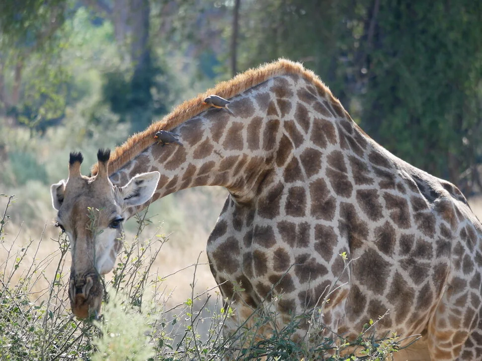 Das Abenteuer beginnt bereits mit dem Gepäck: max. 20kg, inkl. Handgepäck in einer losen Tasche, mehr durfte nicht mit. Los ging es in unser erstes Camp über München-Frankfurt-Johannesburg nach Maun ins Gomoti Plains Camp, Okavango-Delta, im Norden von Botswana. Dort, mit einer viersitzigen Cesna gelandet, wurden wir von unserem Guide Mott herzlich empfangen. Ab in den Jeep und schon auf der Fahrt ins Camp begegneten uns, Giraffen, Elefanten und Strauße. Gomoti ist der Name von Bäumen in dieser Region, deren Blätter die Lieblingsspeise der Elefanten sind.