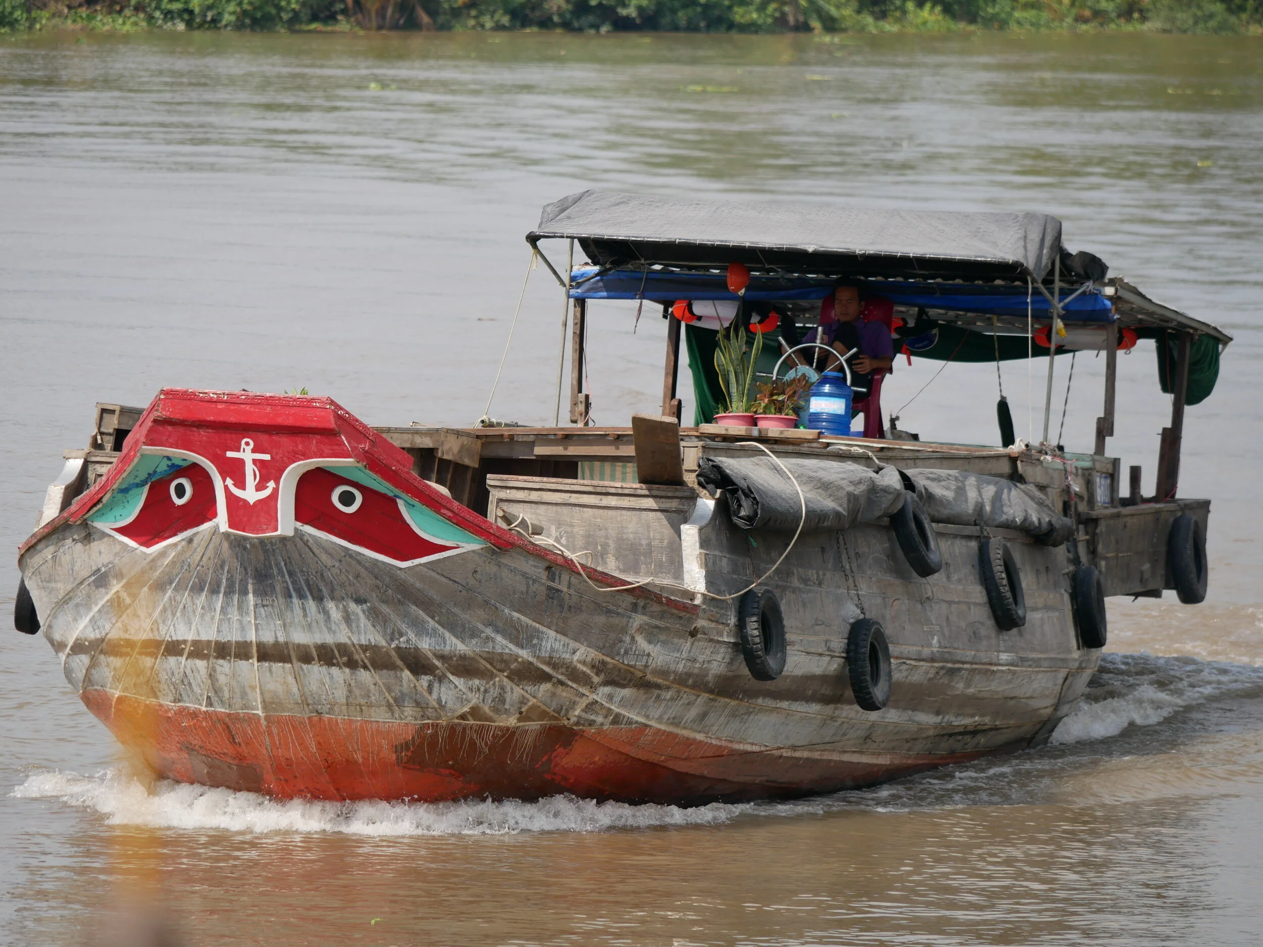 Raus aus der Metropole setzten wir unsere Reise ins Mekong Delta fort. Dort gingen wir an Bord der BASSAC, ein traditionelles Holzboot. Gemütlich an Deck gleiteten Reisfelder, Zuckerrohrplantagen, Wälder, Fabriken, Märkte, Häuser, Tankstellen, ... an uns vorbei. Mit einem kleineren Boot setzten wir ans Ufer über und besuchten Land und Leute. Dort kamen wir in den Genuss von Pop-Reis, Reispapier, Caramel-Bonbons, Obst und Cocos-Plätzchen. Den Schlangenschnaps haben wir ausgelassen.